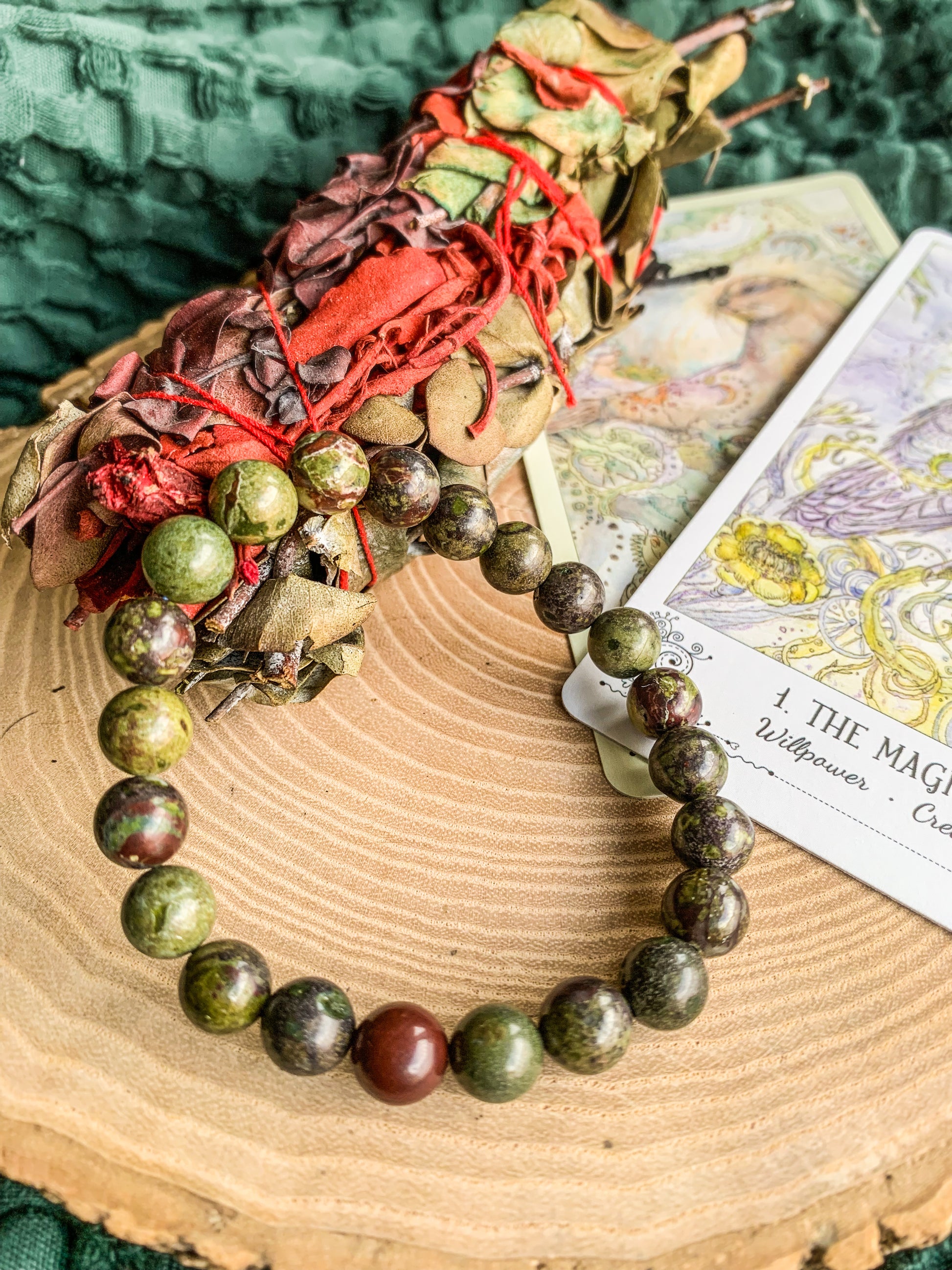 O Jaspe Sangue de Dragão fortifica o corpo e cura as feridas energéticas que se podem transformar em doença.